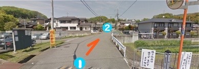 四叉路です。北向きに突き当たりまで行きます。左側に水路があります。