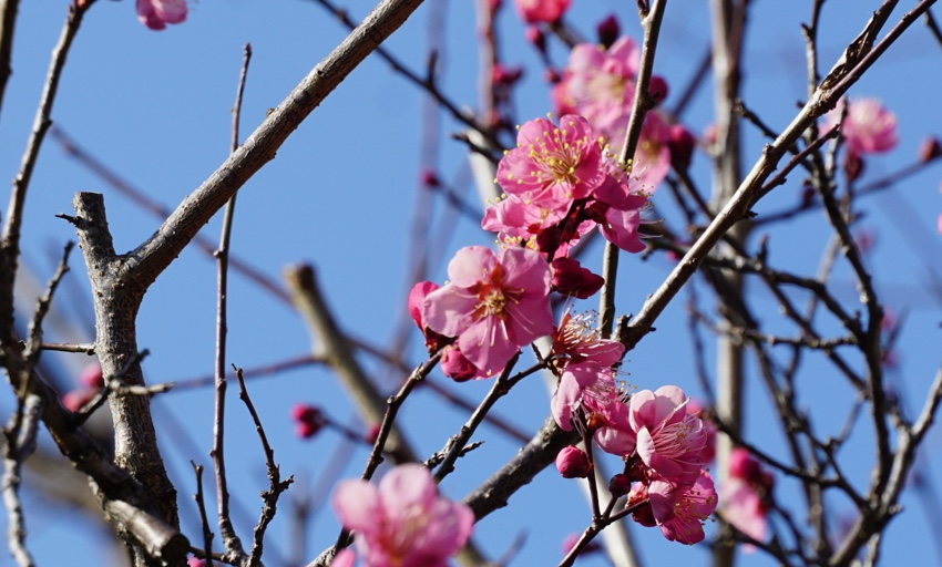 開花の遅れていた紅梅は満開になりました。今日も暖かい日が続いていますが、間も無く大寒。少し寒さが戻りそうです。